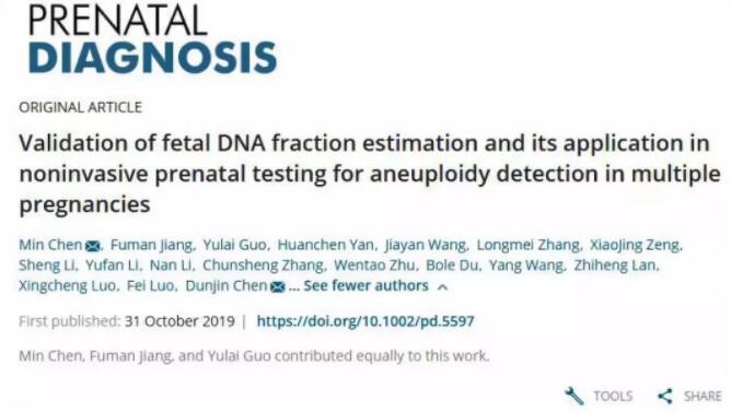 10月31號,產(chǎn)前診斷領(lǐng)域權(quán)威學(xué)術(shù)期刊Prenatal Diagnosis在線發(fā)表了廣州醫(yī)科大學(xué)附屬第三醫(yī)院和廣州精科醫(yī)學(xué)檢驗所共同合作的最新研究成果:“Validation of fetal DNA fraction estimation