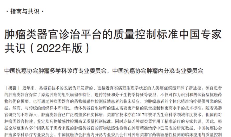 【專家共識(shí)】腫瘤類器官診治平臺(tái)的質(zhì)量控制標(biāo)準(zhǔn)中國專家共識(shí)(2022年版)